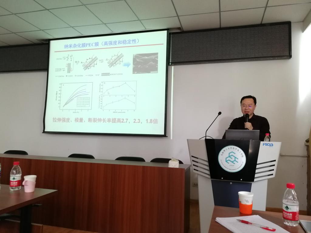 报告中,安全福教授讲解了膜技术的应用,根据分离物的不同合成了不同的分离膜。主要讲了渗透汽化模与纳滤膜,并且实现了难分离体系(乙醇和水)的高效分离。会后,安全福教授还与在场的老师和同学们进行了热烈的学术讨论与交流,耐心地解答了与会师生提出的问题。更深层次的探讨了实验方法及实验难点。