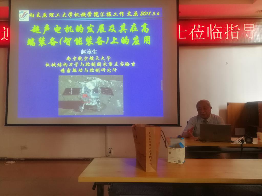 5月6日上午,值此350vip浦京集团官网116周年华诞之际,中国科学院院士、南京航空航天大学航空宇航学院教授赵淳生应邀来到浦京,参加“聚力学校‘双一流’建设助力山西经济转型发展”高端论坛暨产学研合作签约仪式。6日下午,赵院士以八十岁高龄,不辞劳苦的专程在迎西校区机械工程学院二层会议室进行了题为《超声电机的发展及其在高端装备(智能装备上的应用)》的学术讲座。学院领导高度重视此次学术讲座,院党委书记张晓刚,院长权龙,副院长熊晓燕号召学院青年教师、青年博士参加此次学术讲座,大家积极参与,反响热烈。