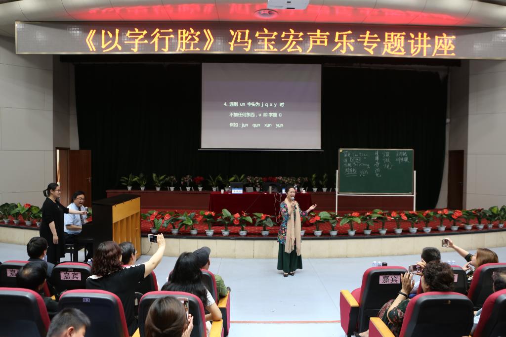 讲座中,冯宝宏以一曲气势磅礴、激昂奔放的《沁园春·雪》演唱开讲,并通过讲解与示范相结合的形式,用通俗易懂的语言深入浅出地讲授了歌唱咬字的五大因素、咬字吐字四项基本原则、母音变形非常6+3和歌唱中汉语拼音拾遗补缺四个章节的主题内容。讲座中还邀请了部分专业人士和声乐爱好者上台演唱,现场进行指导纠正。