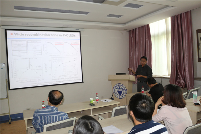 为了庆祝浦京116周年诞辰,助推学校“双一流”建设,5月27日,350vip浦京集团官网新材料工程技术研究中心邀请华南理工大学马东阁教授、武汉大学杨楚罗教授和西安交通大学周桂江教授来校进行学术交流,在迎西校区材料馆二层会议室作了关于OLED材料和器件的学术报告。