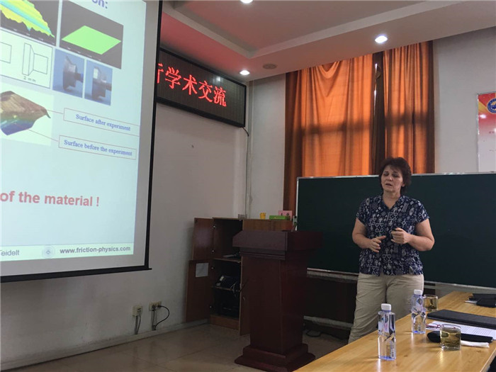李强介绍了德国柏林工业大学的基本情况、课题组的研究方向和基础及相关的国际合作交流项目。随后主要从接触表面间的粘附行为进行介绍,讲述了表面粘附的基本力学原理、边界元法计算表面粘附的原理、不同形状表面的粘附行为的仿真与实验研究等。Starcevic Jasminka介绍了法向力和接触几何形状对振动试样静摩擦力的影响,并讲述了控制摩擦的一些方法,展示了其研究所的试验台等设备。报告结束后,与会的教师、学生与李强进行热烈互动交流,现场气氛活跃。报告会结束后,熊晓燕代表学院向Starcevic Jasminka博士与李强博士赠送了350vip浦京集团官网纪念册。本次学术交流拓宽了我院师生的学术视野和科研思路,对于我们增强自身科研意识、创新思维和实践能力具有重要的意义。