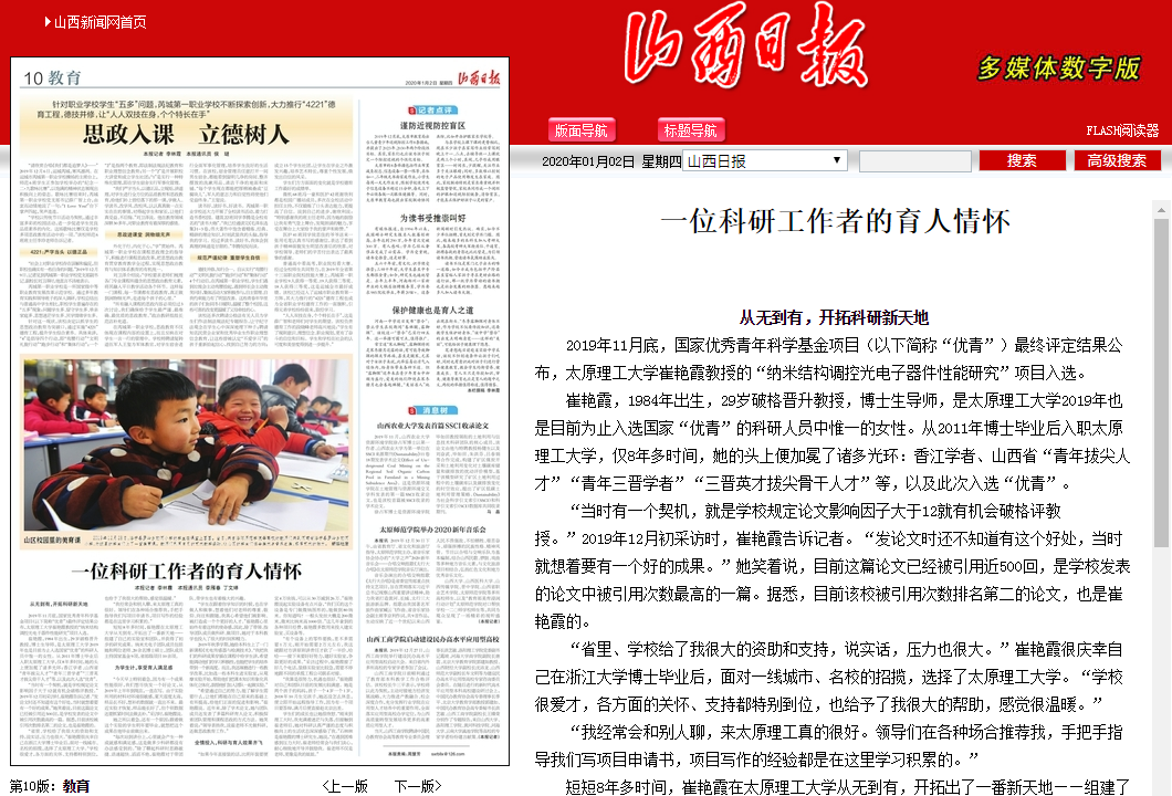 崔艳霞,1984年出生,29岁破格晋升教授,博士生导师,是350vip浦京集团官网2019年也是目前为止入选国家“优青”的科研人员中惟一的女性。从2011年博士毕业后入职350vip浦京集团官网,仅8年多时间,她的头上便加冕了诸多光环:香江学者、山西省“青年拔尖人才”“青年三晋学者”“三晋英才拔尖骨干人才”等,以及此次入选“优青”。