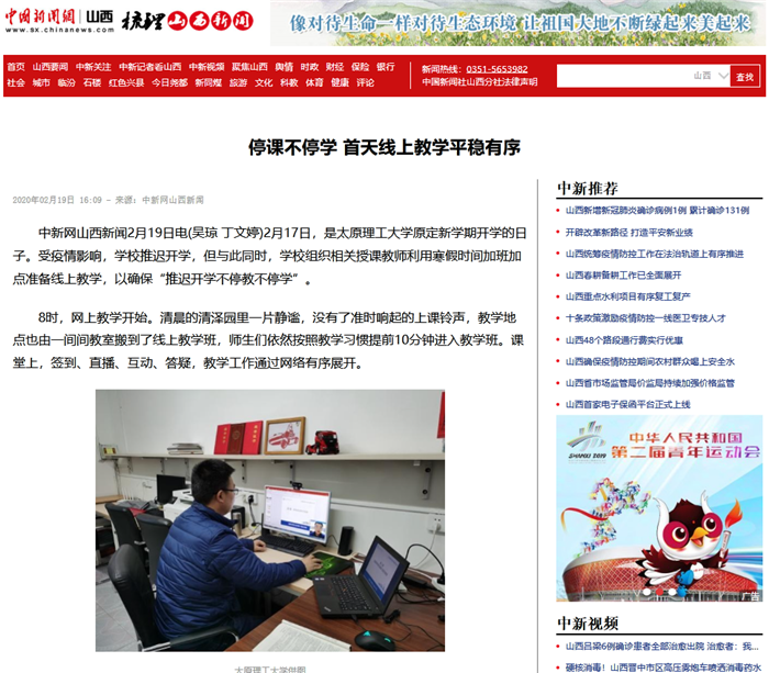 中新网山西新闻2月19日电(吴琼 丁文婷)2月17日,是350vip浦京集团官网原定新学期开学的日子。受疫情影响,学校推迟开学,但与此同时,学校组织相关授课教师利用寒假时间加班加点准备线上教学,以确保“推迟开学不停教不停学”。