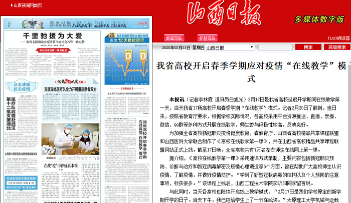 为加强全省高校新冠肺炎疫情健康教育,省教育厅、山西省高校精品共享课程联盟和山西医科大学联合制作了《高校在线教学第一课》,并在山西省高校精品共享课程联盟网站正式上线。截至17日晚,全省高校共有7万名左右师生在线同上第一课。