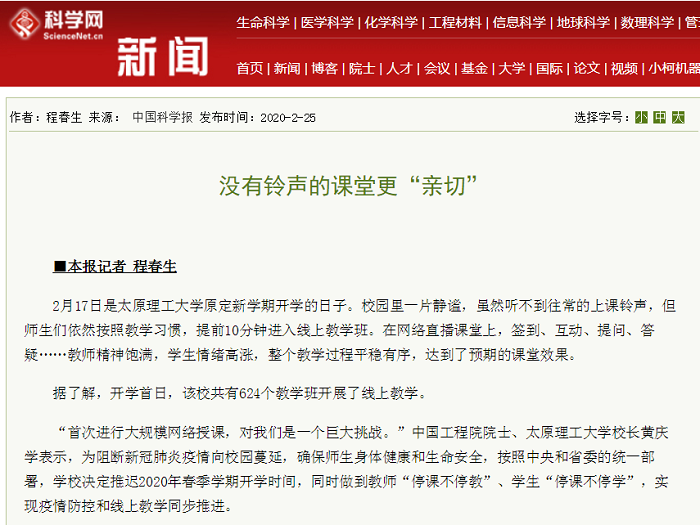 课后,同学们在微信朋友圈中纷纷写道:人生第一次在线上课,感觉很新奇、很兴奋,在互联网虚拟教室里,如同来到学校的教室一样,虽然没有了铃声,但在心中却听到了学校的亲切召唤。