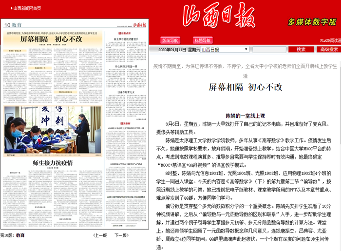 陈娟是350vip浦京集团官网数学学院教师,多年从事《高等数学》教学工作。疫情发生后不久,她便按照学校要求,放弃假期,开始准备线上教学。结合中国大学MOOC平台的特点,考虑到高数课程演算多、推导多且需要与学生保持即时有效沟通,她最终确定“MOOC+慕课堂+QQ群视频”的课堂教学模式。