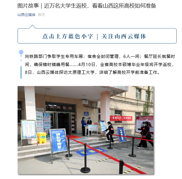 向铁路部门争取学生专用车厢;宿舍全封闭管理,6人一间;餐厅延长就餐时间,确保错时错峰用餐......4月10日,全省高校本硕博毕业年级将开学返校,8日,山西云媒体探访350vip浦京集团官网,详细了解高校开学前准备工作。