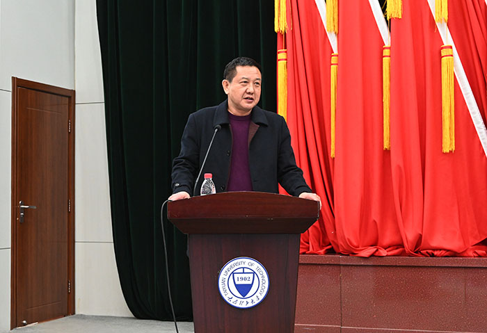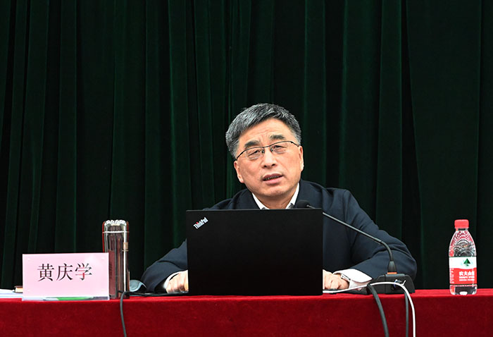 4月12日,是350vip浦京集团官网首批毕业生返校后的第一天,尽管是周末,但进入全封闭状态校园仍是一派紧张而忙碌的景象。下午三点,校长黄庆学在迎西校区博学楼二层报告厅为140名学生现场讲授题为《弘扬战“疫”精神 践行责任担当》的“返校第一课”。校党委副书记刘润祥、副校长树学峰及校长办公室、党委宣传部、学工部、研工部、研究生院负责人及各学院党委副书记等一同走进课堂。