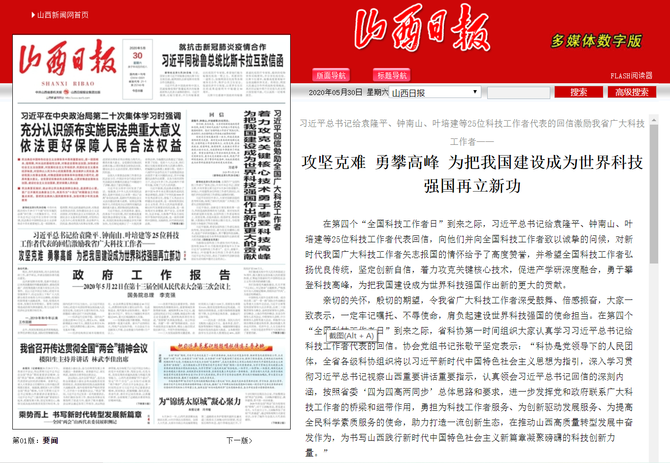 发布时间:2020-05-30 来源:山西日报 作者:山西日报