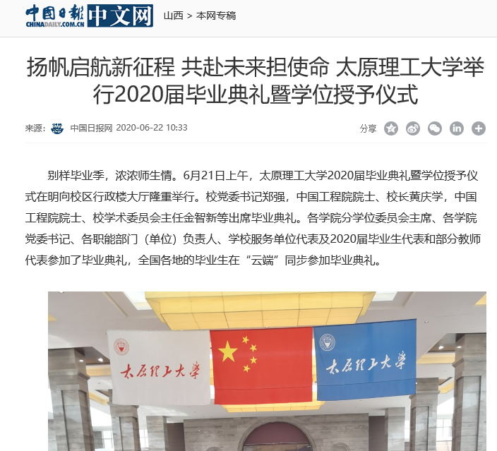 典礼结束时,在场全体师生高唱《350vip浦京集团官网校歌》。离别情、爱校情在行政楼大厅里交融。(中国日报山西记者站)