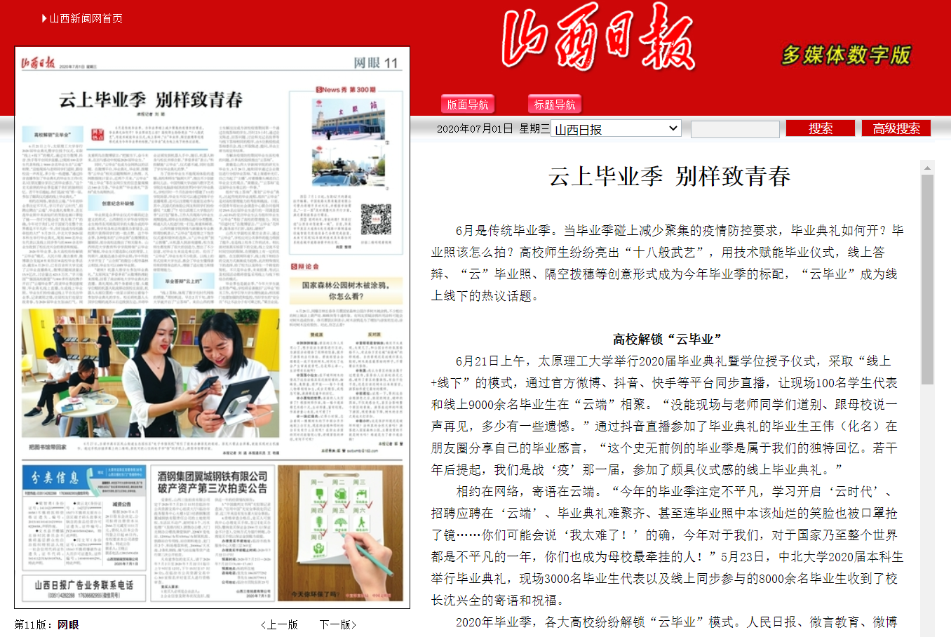 山西大学副校长梁吉业表示,通过“云毕业”,学校应对公共事件的能力得到了提升,也是线上校务工作的试水。相比面对面真实场景下的交流,线上交流不受时间空间的限制,在便捷性上有一定的优越性。在互联网环境下,线上线下相结合的交流方式渐渐成为趋势,此次特殊情况下的选择,给了校方以及师生一个转变的契机。不只是毕业季,未来授课、考试以及校园活动都将借鉴采用线上与线下相结合的模式。