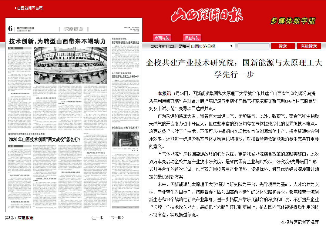 作为采煤和炼焦大省,我省有大量煤层气、焦炉煤气,此外,致密气、页岩气和生物质天然气的开发潜力也十分巨大,但这些丰富的资源均存在气体提纯净化的世界级技术难点。攻克这些“卡脖子”技术,不仅可以在短期内实现我省气体能源增储上产、提高资源综合利用效率,还能进一步减少温室气体及氮氧化物排放,对我省营造低碳能源消费生态具有重要的意义。