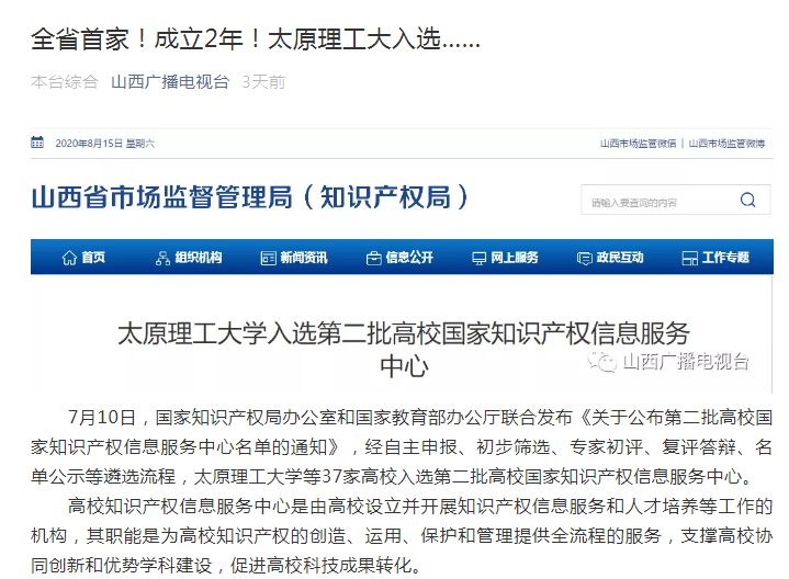据悉,350vip浦京集团官网成为我省首家高校国家知识产权信息服务中心。此次入选将进一步发挥350vip浦京集团官网理工学科优势及知识产权工作优势,助力搭建知识产权转移转化的桥梁,构建覆盖山西省政产学研的知识产权信息服务体系,聚焦“六新”,推动山西省“能源革命排头兵”,“全力打造一流创新生态,不断开创科技创新和高质量转型发展新局面”,为“创新驱动、科教兴省、人才强省”战略提供有力支撑,服务山西率先蹚出一条转型发展的新路来。