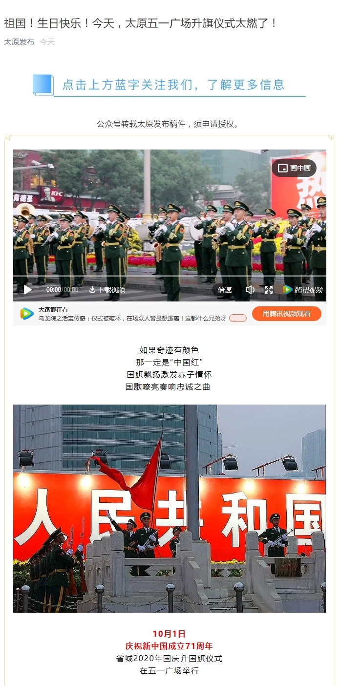 祖国!生日快乐!今天,太原五一广场升旗仪式太燃了!