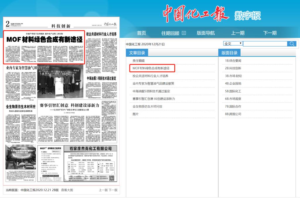 “通过进一步的技术攻关,该团队在实验室已完成了MOF的放大实验,为实现吨级日产能奠定了基础。”薛春峰表示,接下来团队希望能够和企业进行合作,加快科研成果转化。