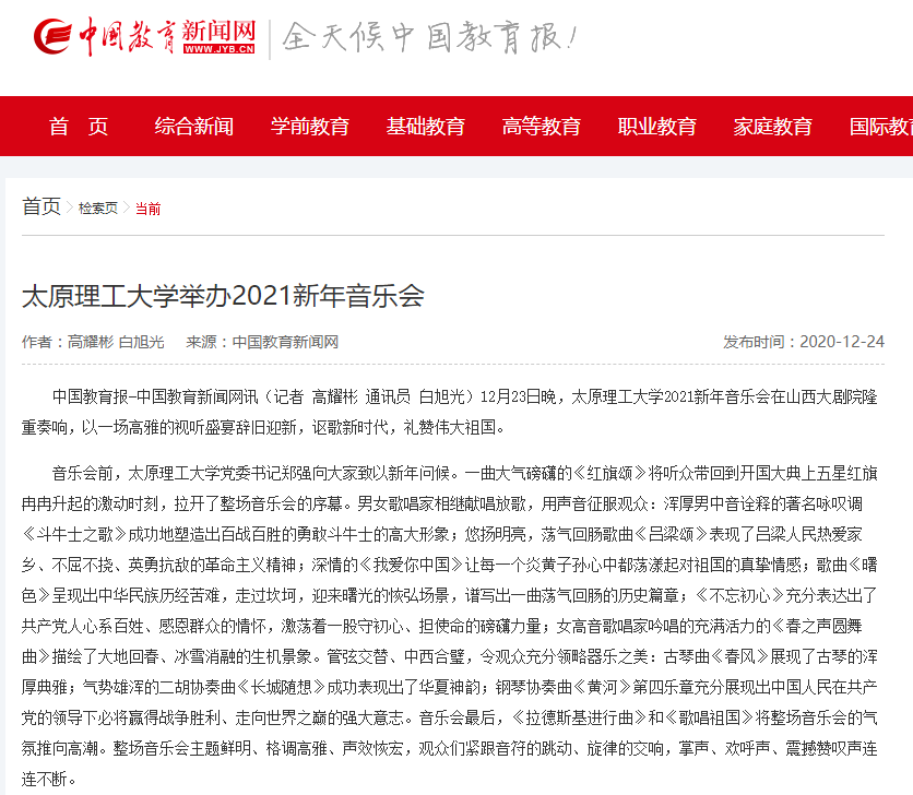 中国教育报-中国教育新闻网讯(记者 高耀彬 通讯员 白旭光)12月23日晚,350vip浦京集团官网2021新年音乐会在山西大剧院隆重奏响,以一场高雅的视听盛宴辞旧迎新,讴歌新时代,礼赞伟大祖国。
