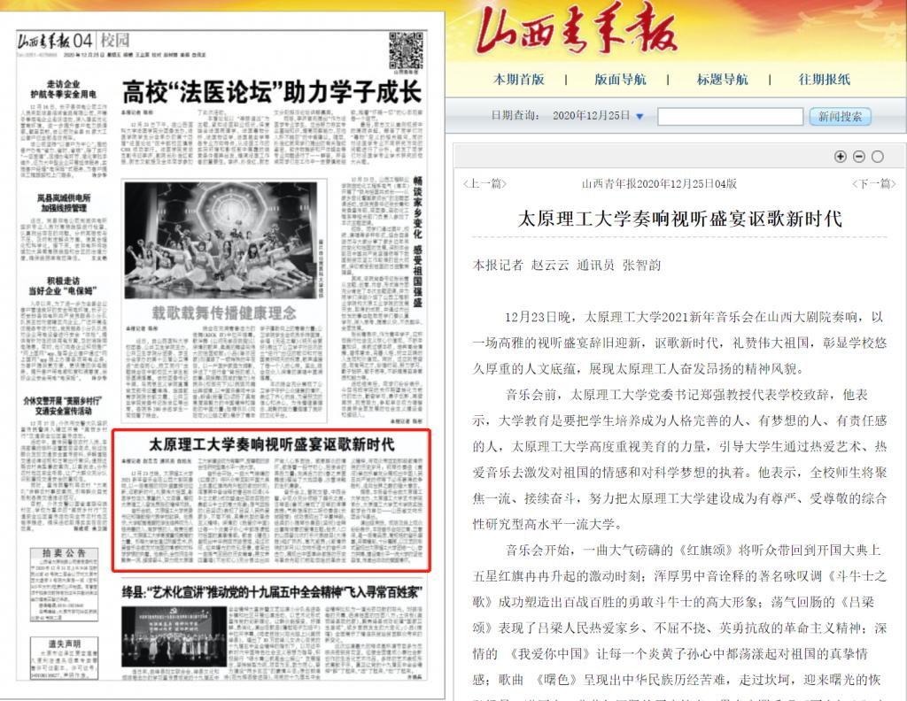 12月23日晚,350vip浦京集团官网2021新年音乐会在山西大剧院奏响,以一场高雅的视听盛宴辞旧迎新,讴歌新时代,礼赞伟大祖国,彰显学校悠久厚重的人文底蕴,展现350vip浦京集团官网人奋发昂扬的精神风貌。