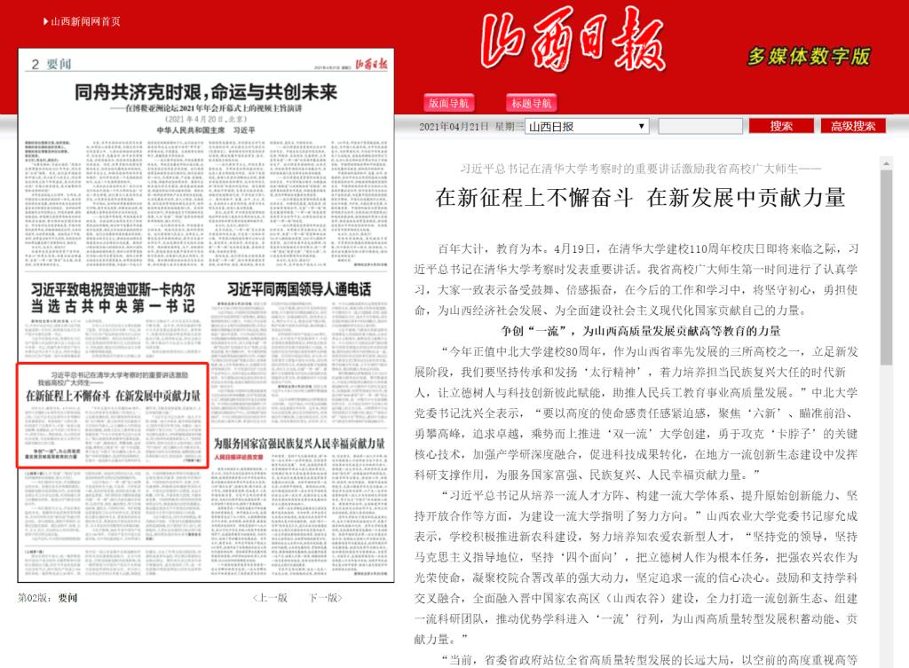百年大计,教育为本。4月19日,在清华大学建校110周年校庆日即将来临之际,习近平总书记在清华大学考察时发表重要讲话。我省高校广大师生第一时间进行了认真学习,大家一致表示备受鼓舞、倍感振奋,在今后的工作和学习中,将坚守初心,勇担使命,为山西经济社会发展、为全面建设社会主义现代化国家贡献自己的力量。