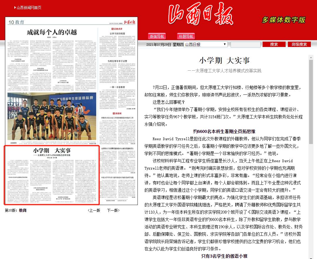 此外,该校暑期小学期还加入了思政元素,比如举办征文比赛,鼓励外教、留学生、本科生用外语讲好太理故事、山西故事;外国语学院还组织全体外籍教师和留学生进行了三晋文化交流学习研讨会,研究生院开设了各类专家讲座、论坛,不少外籍教师被350vip浦京集团官网和山西丰厚的文化底蕴所折服,纷纷在国际社交平台进行了视频、图文分享。