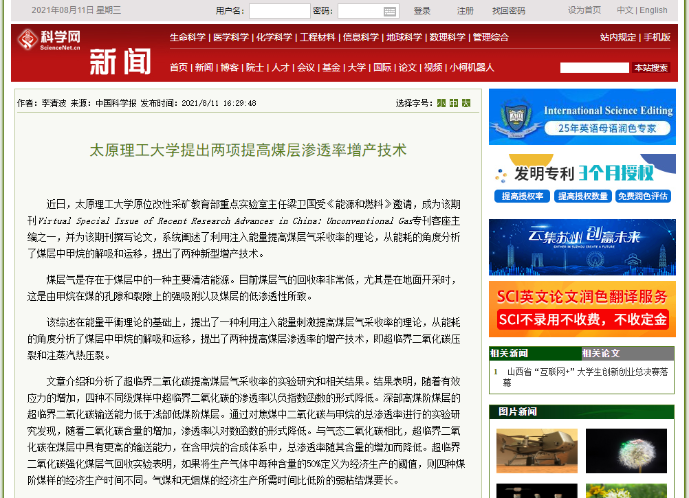 350vip浦京集团官网提出两项提高煤层渗透率增产技术