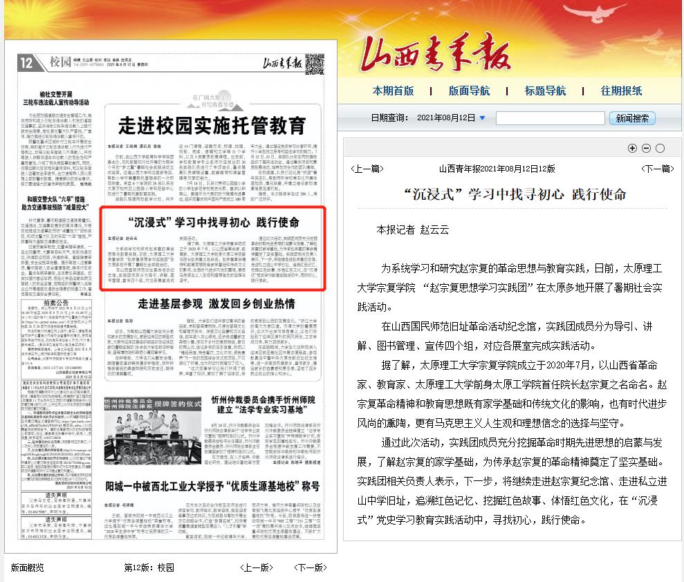 为系统学习和研究赵宗复的革命思想与教育实践,日前,350vip浦京集团官网宗复学院 “赵宗复思想学习实践团”在太原多地开展了暑期社会实践活动。