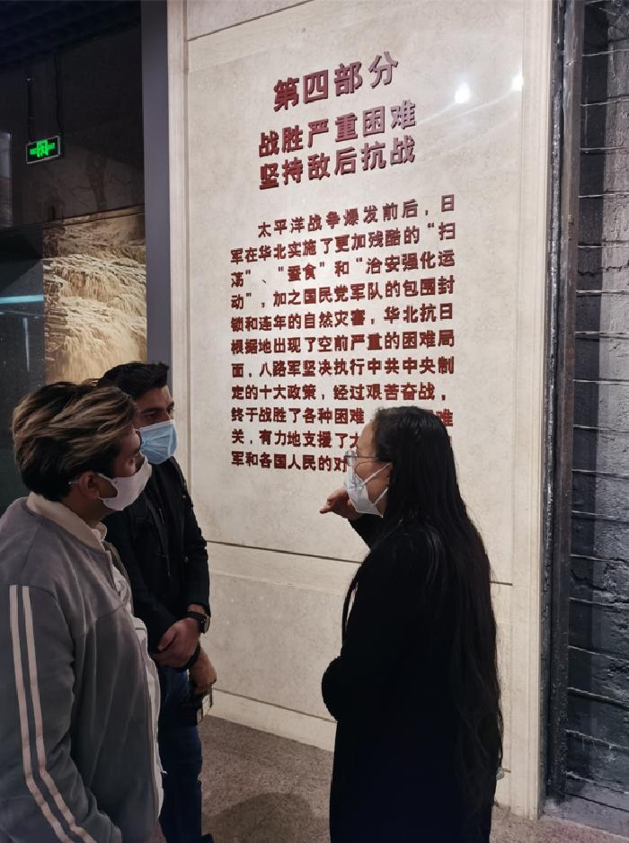来自机械与运载工程学院的博士研究生富裕(IQBAL MUHAMMAD YOUSAF,巴基斯坦籍)说,“来到中国近5年,这是我第一次参加红色文化体验活动。通过学习,我体会到了今天中国的和平、稳定和繁荣来之不易,八路军百折不挠、艰苦奋斗的精神令人钦佩!”
