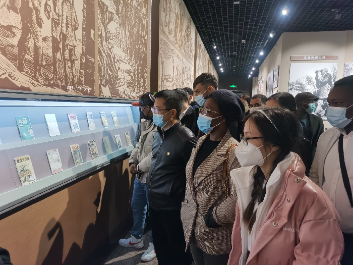 在八路军太行纪念馆,中外师生一一结对,近距离参观了华北《新华日报》印刷厂使用过的铸字机、晋冀鲁豫边区政府布告、反法西斯联盟旗帜等馆藏文物和国际主义战士白求恩在晋察冀边区救治伤员时所使用临时场所的复刻实景等,直观感受了侵华日军与中国八路军在武器装备、后勤保障等方面的差异,系统了解了抗日根据地的创建发展历程和平型关大捷、百团大战等经典战役的背景和意义,深刻体会了毛泽东在《论持久战》中提出的“兵民是胜利之本”重要论断。