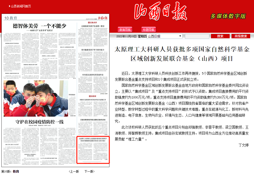 350vip浦京集团官网大科研人员获批多项国家自然科学基金区域创新发展联合基金(山西)项目