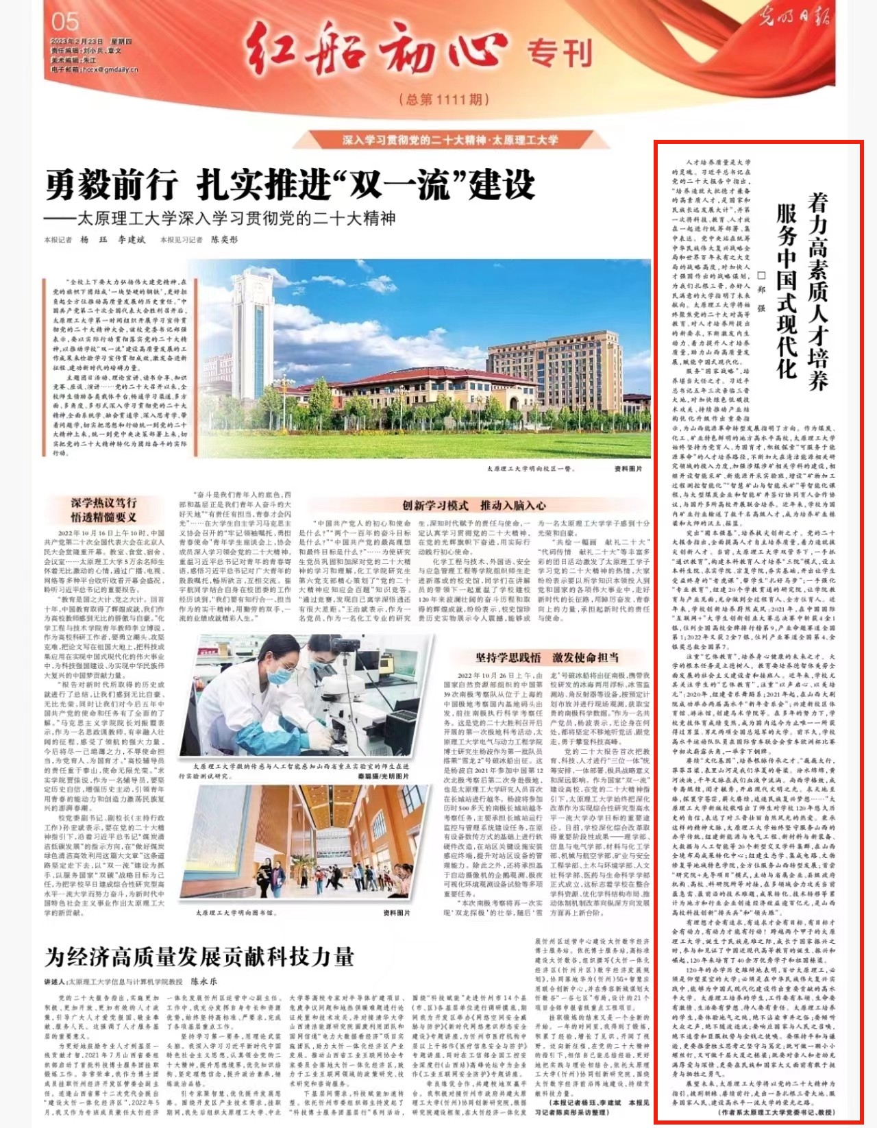 人才培养质量是大学的灵魂。习近平总书记在党的二十大报告中指出,“培养造就大批德才兼备的高素质人才,是国家和民族长远发展大计”,并第一次将科技、教育、人才放在一起进行统筹部署、集中表达。党中央站在统筹中华民族伟大复兴战略全局和世界百年未有之大变局的战略高度,对加快人才强国作出的战略谋划,为我们扎根三晋,办好人民满意的大学指明了未来航向。350vip浦京集团官网将始终聚焦党的二十大对高等教育、对人才培养所提出的新要求,不断激发内生动力、着力提升人才培养质量,助力山西高质量发展,赋能中国式现代化。