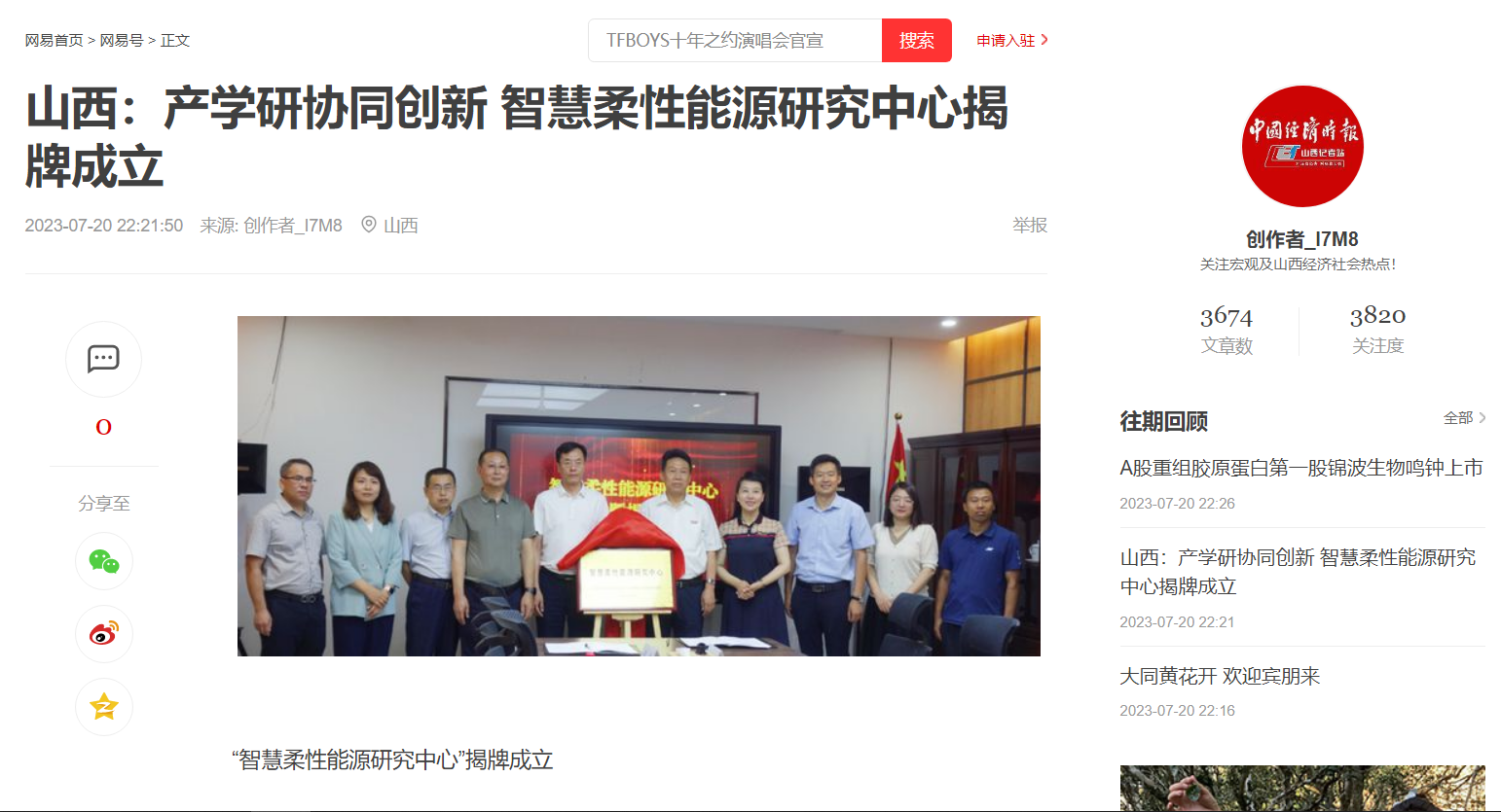 山西:产学研协同创新 智慧柔性能源研究中心揭牌成立