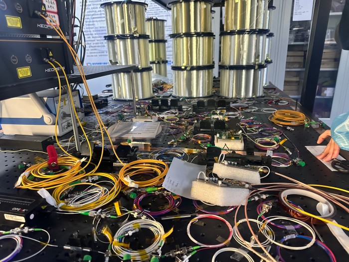 实验台上复杂的布线。摄影 李清波