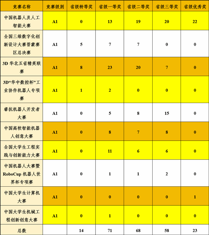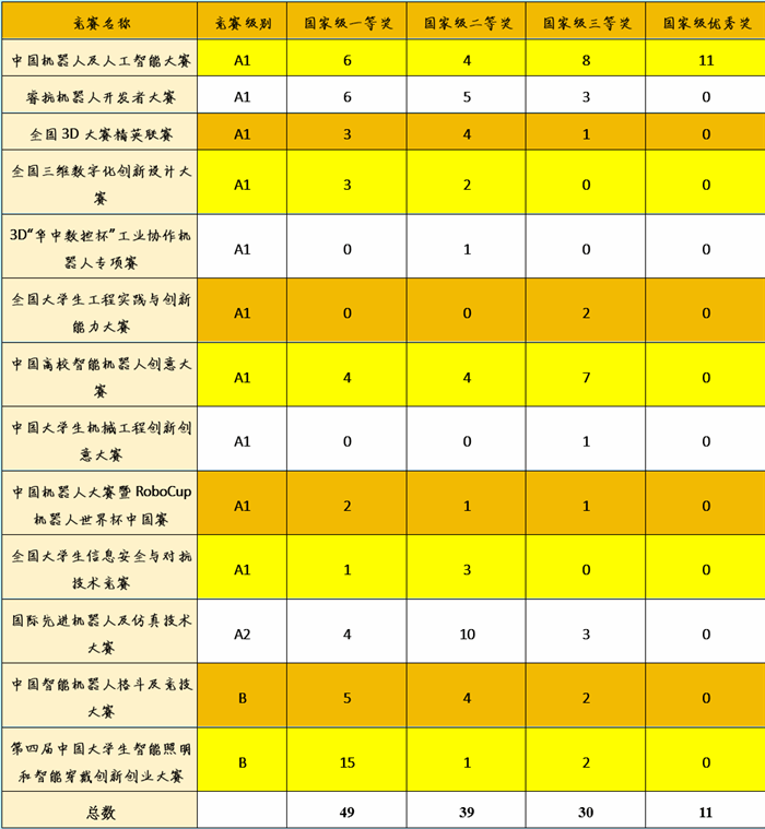 中国高等教育学会竞赛排行榜国家级赛事获奖统计