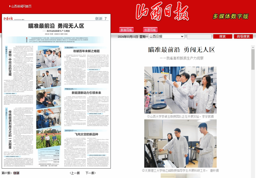 这项创新性研究成果是山西大学发展新质生产力的缩影。为发展新质生产力,山西大学打破校内外、学科间、学院间边界,推进重大基础研究设施建设与重大科学发现紧密结合,布局、完善、形成有特色的科技创新平台体系,从创新基础建设方面为新质生产力的形成和发展注入原动力;加强高层次人才队伍建设,充分整合人力资源,以团队优势力量承接重大科研任务,从创新主体建设方面为新质生产力的形成和发展注入原动力;以深入推进有组织科研为主线,建立“前沿探索—基础研究—集中攻关”的多层次科研体系,形成“科技—工程—产业”的全链条、系统化的科研发展格局,为新质生产力的形成发展提供系统保障等。