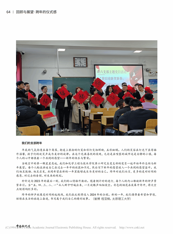 当晚空中的第一颗星星亮起,我们和化学工程与技术学院第六研究生党支部的党员一起开始年终总结与新年展望。每个人轮流讲述自己在过去一年中的收获和不足,然后写下新年的愿望放入一个共同的愿望盒中。我们相互鼓励、相互启发,共同希望在新的一年里能够成长为更好的自己。跨年对我们而言,更多的是对时间的感恩、对过去的告别、对未来的规划。