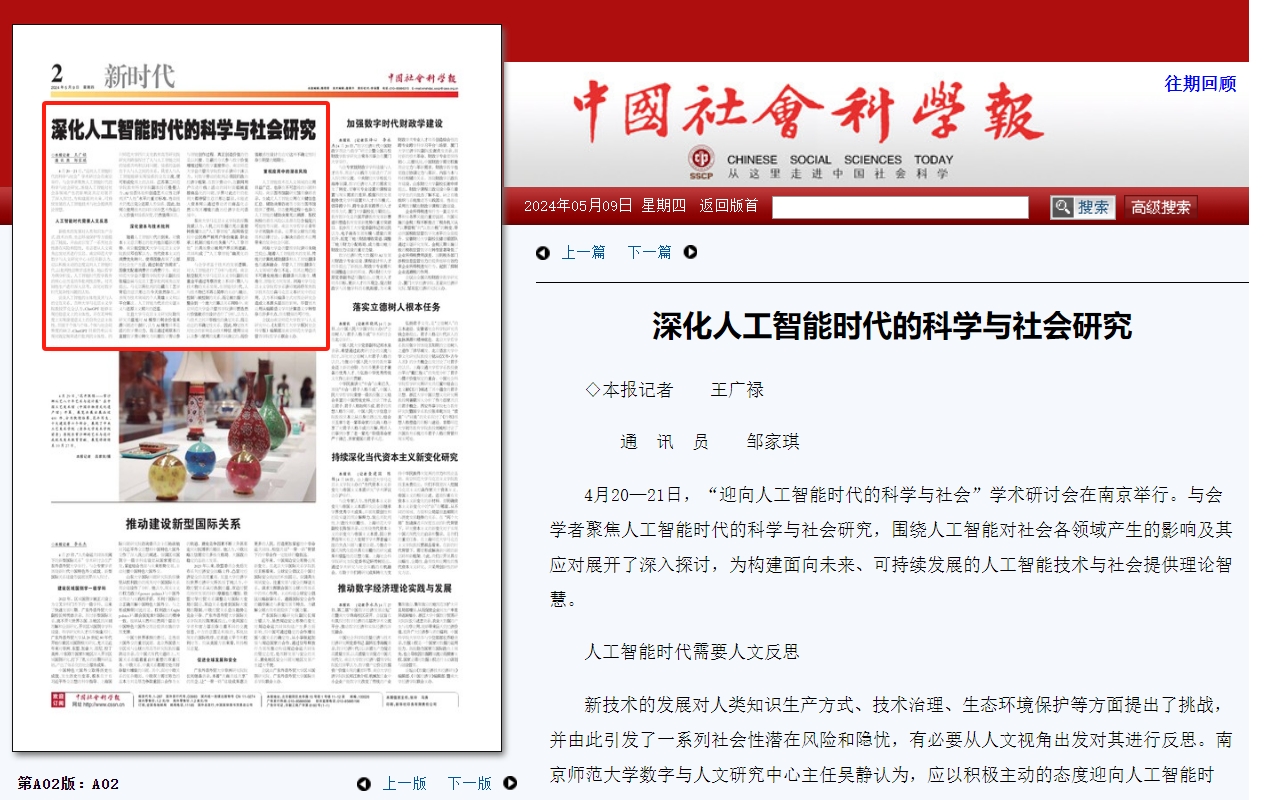4月20—21日,“迎向人工智能时代的科学与社会”学术研讨会在南京举行。与会学者聚焦人工智能时代的科学与社会研究,围绕人工智能对社会各领域产生的影响及其应对展开了深入探讨,为构建面向未来、可持续发展的人工智能技术与社会提供理论智慧。