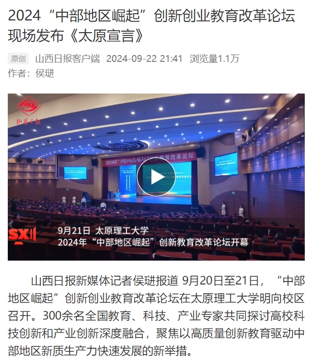 2024“中部地区崛起”创新创业教育改革论坛现场发布《太原宣言》