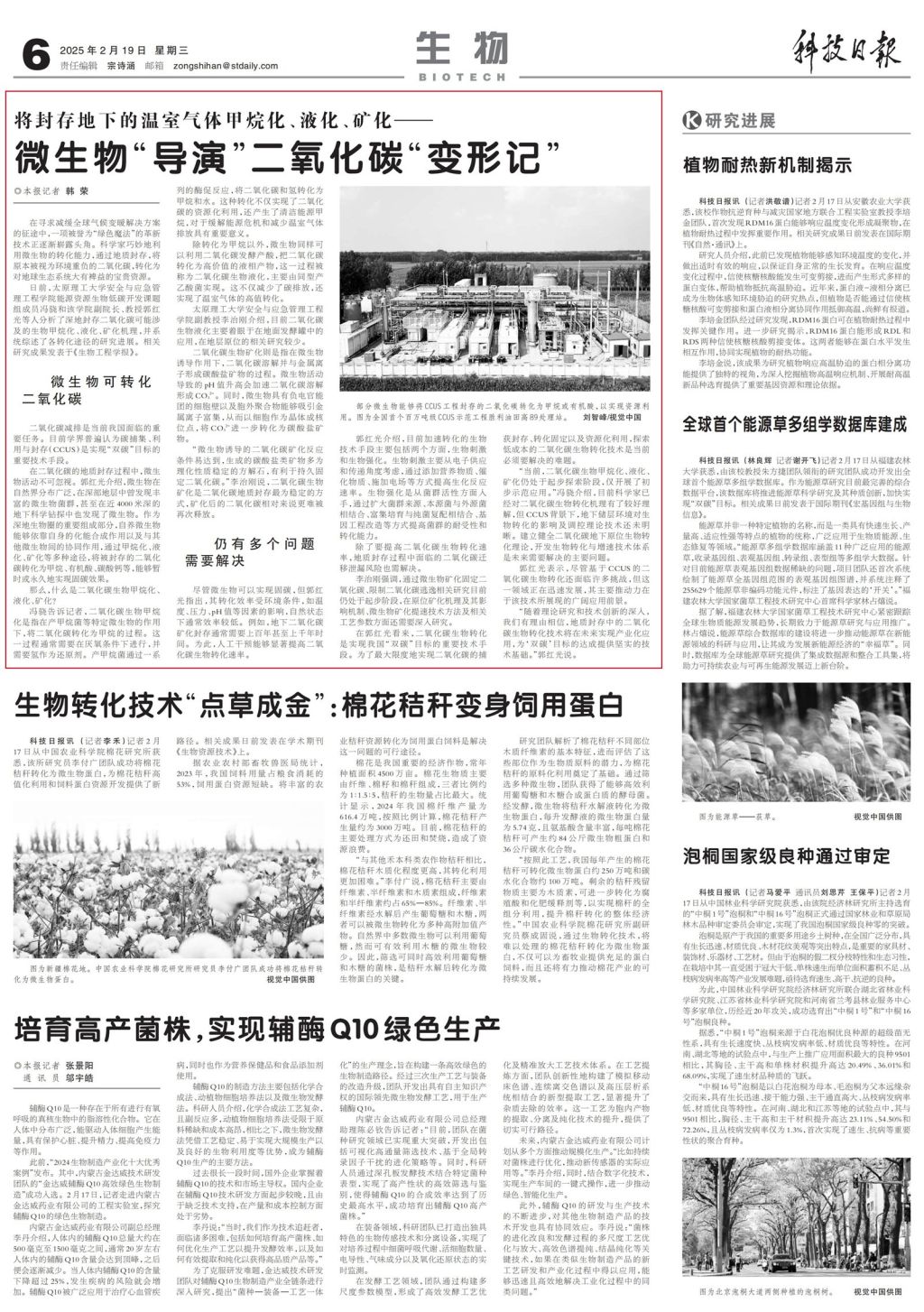 “随着理论研究和技术创新的深入,我们有理由相信,地质封存中的二氧化碳生物转化技术将在未来实现产业化应用,为‘双碳’目标的达成提供坚实的技术基础。”郭红光说。