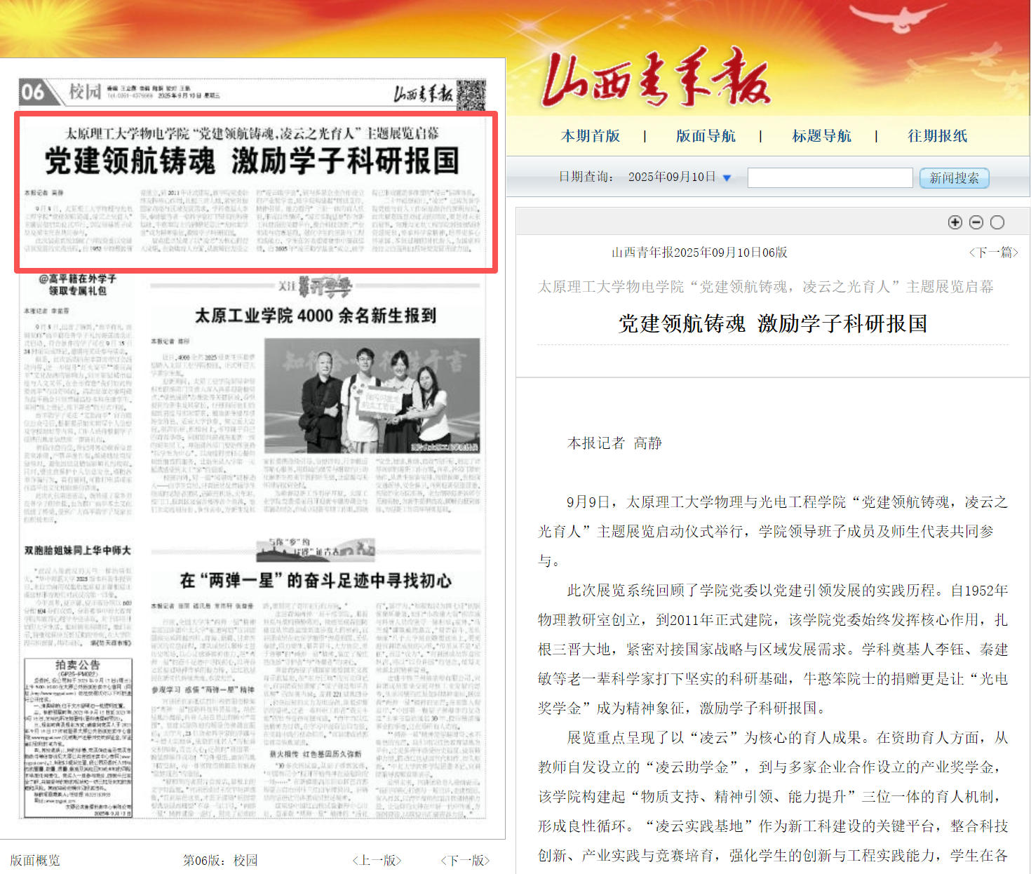 二十年砥砺前行,“凌云”已成为该学院党建与育人工作深度融合的鲜明标识。此次展览既是对过去的回顾,更是对未来的展望。物理与光电工程学院将继续坚持党建统领,传承科学家精神,培养更多心怀家国、本领过硬的时代新人,为国家科技自立自强和山西转型发展贡献力量。