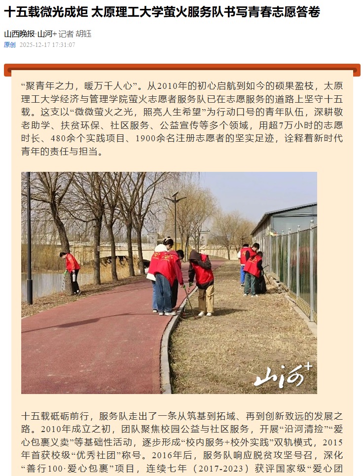 十五载微光成炬 350vip浦京集团官网萤火服务队书写青春志愿答卷