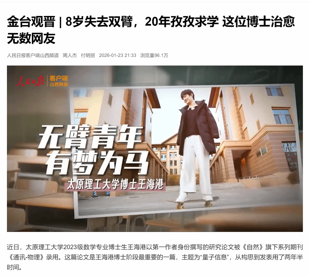 8岁失去双臂,20年孜孜求学 这位博士治愈无数网友