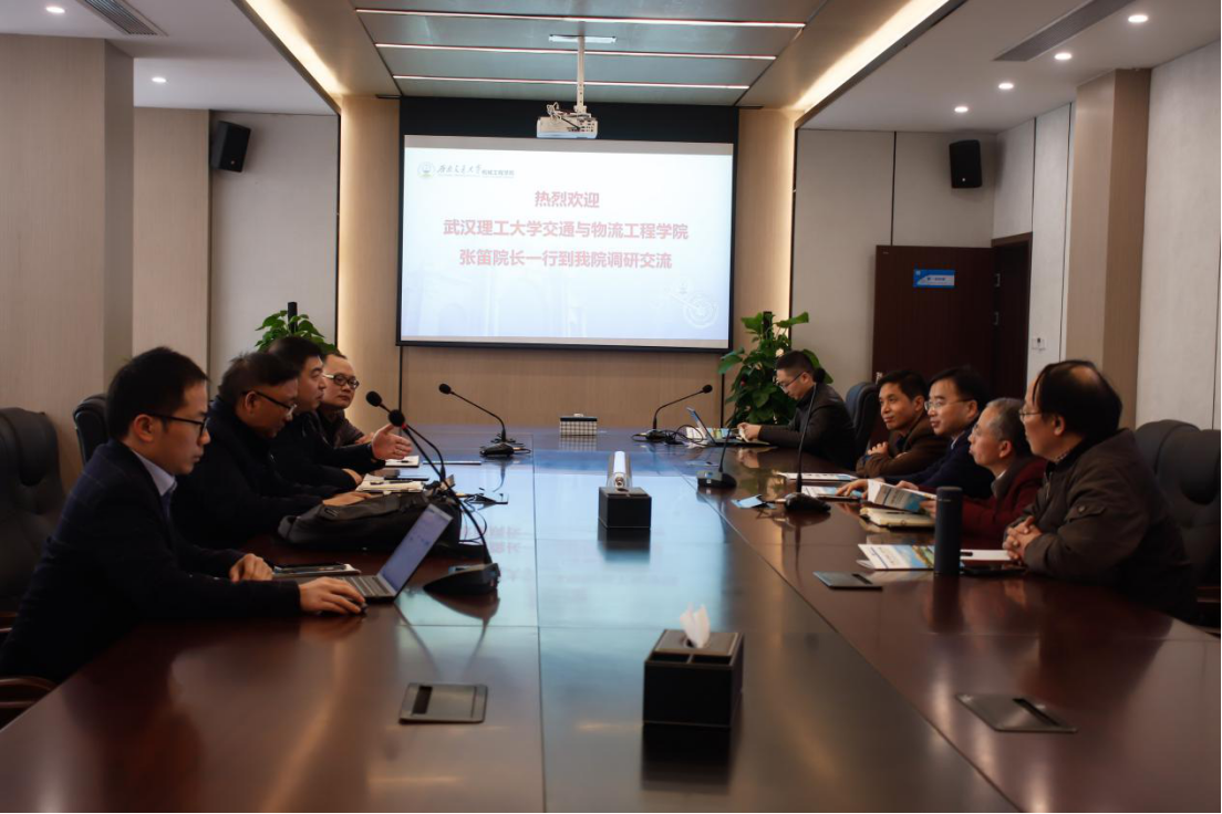 2021年12月3日下午14:00,武汉理工大学交通与物流工程学院一行莅临kaiyun体育官方网站入口登录调研交流,双方对学科工作建设等方面交换意见,并达成了系列共识。本次研讨交流会于九里校区2238会议室召开,kaiyun体育官方网站入口登录副院长田怀文主持本次会议。