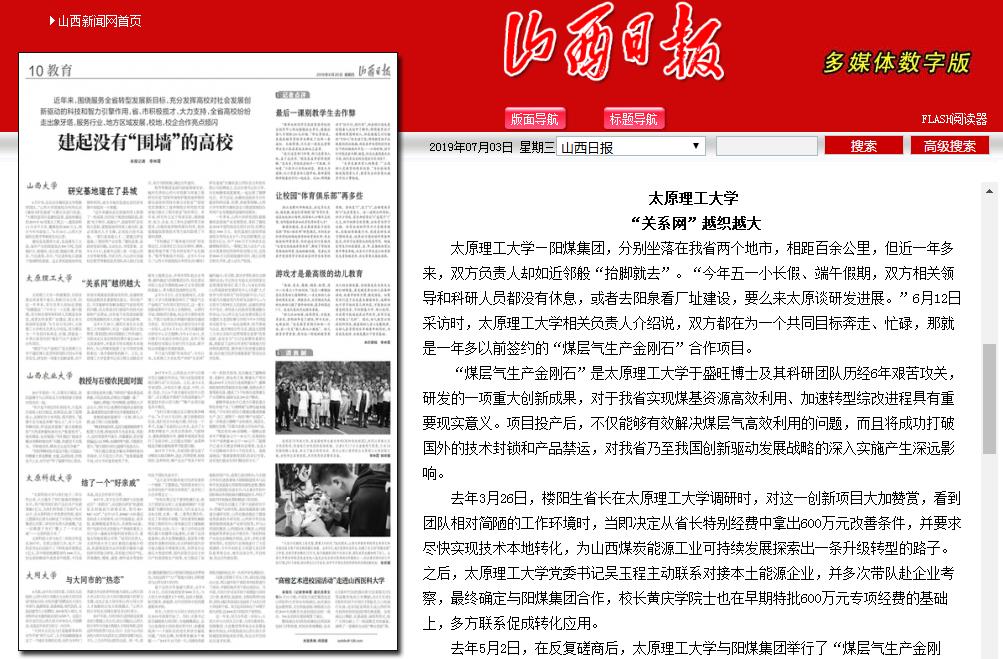 “煤层气生产金刚石”是350vip浦京集团官网于盛旺博士及其科研团队历经6年艰苦攻关,研发的一项重大创新成果,对于我省实现煤基资源高效利用、加速转型综改进程具有重要现实意义。项目投产后,不仅能够有效解决煤层气高效利用的问题,而且将成功打破国外的技术封锁和产品禁运,对我省乃至我国创新驱动发展战略的深入实施产生深远影响。