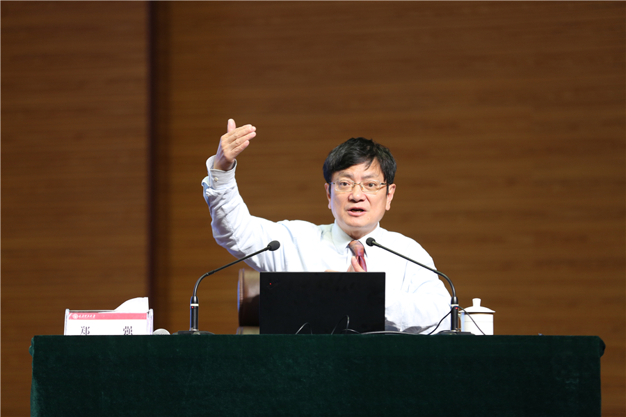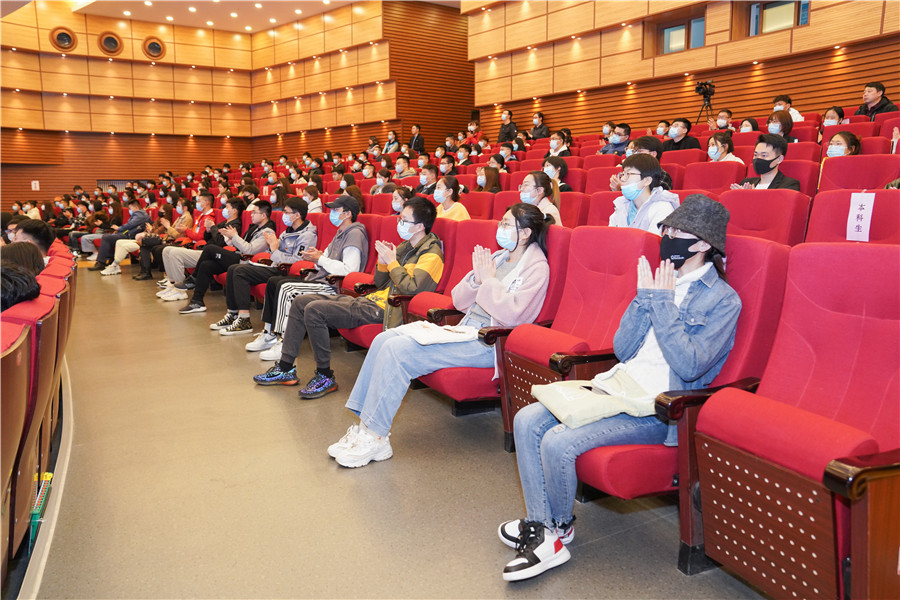 郑强教授以大量的事实和数据为依据,从国家的利益和民族的高度,深入浅出地讲明了中国共产党、中国特色社会主义道路这两个历史选择的必然。掷地有声的话语间,一种难以掩饰的自豪感和兴奋感深深地感染着现场的每一位学生,掌声一次又一次地响起来。