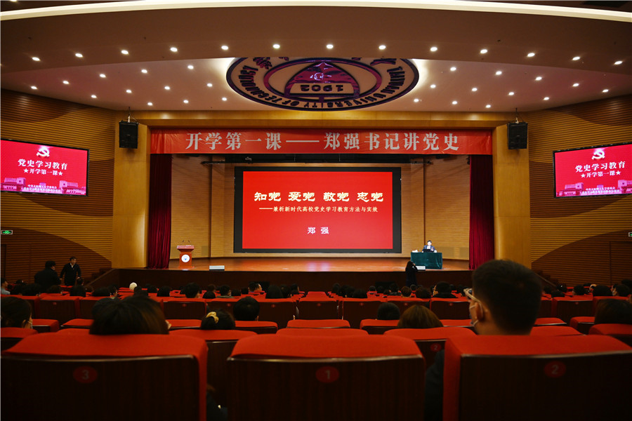 新学期伊始,浦京的莘莘学子迎来了以党史学习教育为主要内容的“开学第一课”。3月8日下午,校党委书记郑强教授以《知党 爱党 敬党 忠党——兼析新时代高校党史学习教育方法与实效》为题开讲“第一课”。省委教育工委宣传部部长、省教育厅思政处处长李艳庭;校党委副书记李晋平、刘润祥出席,党政职能部门、基层党委、学院负责人代表,本科生、研究生代表,思政课教师代表等同上“开学第一课”。