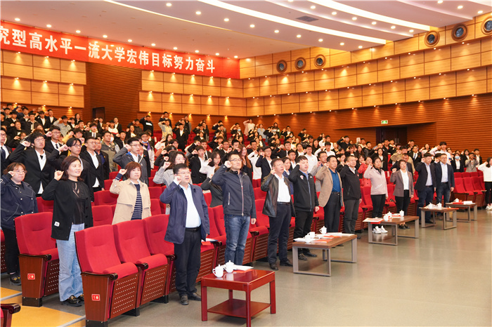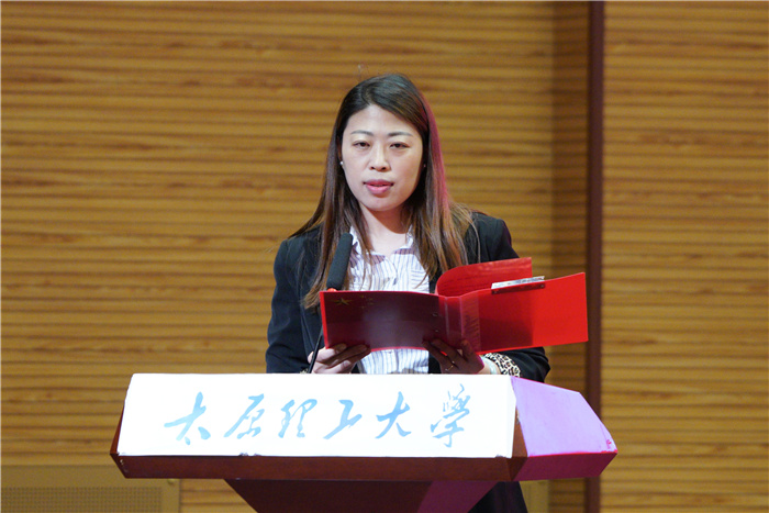大会还为新发展的团员举行了入团仪式,主席台就座的领导为新发展的团员代表佩戴团徽。面对鲜红的团旗,全体与会青年举起右拳,在校团委负责人的带领下庄严宣誓,表达出不忘初心跟党走,为共产主义奋斗终身的坚定信念。