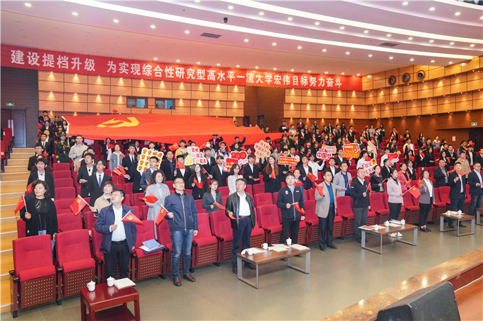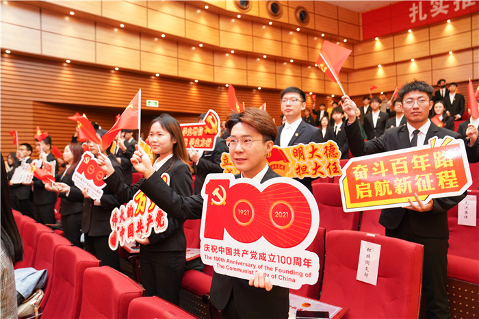 大会结束后,在《没有共产党就没有新中国》的激昂歌声中,全体与会人员共同托举一面巨型党旗在全场缓缓移动,为伟大的党和祖国送上350vip浦京集团官网青年学子最真诚的热爱与祝福。