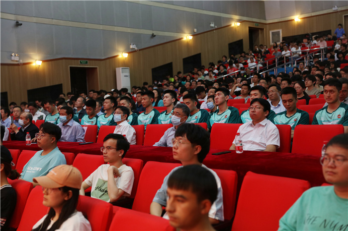 5月26日下午,学校党史学习教育“百组千讲5·20教育计划”红色电影展播第12场《建军大业》在虎峪校区同泽会堂开播,校党委书记郑强,中国工程院院士、校长黄庆学,校党委副书记刘润祥,副校长张献明与全校中层干部、辅导员和学生党员代表及挺进第23届CUBA中国大学生篮球联赛精英八强的男篮队员和教练员一道观看了电影。观影活动由刘润祥主持。