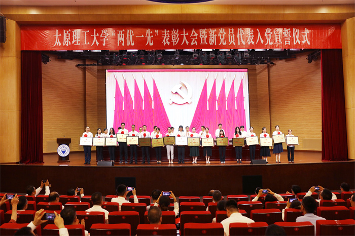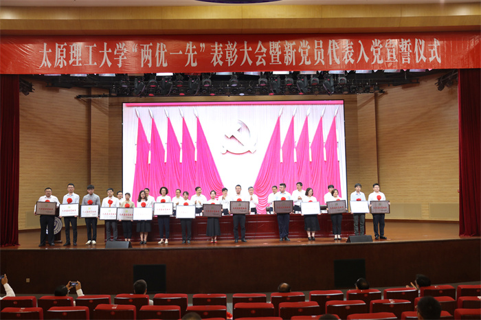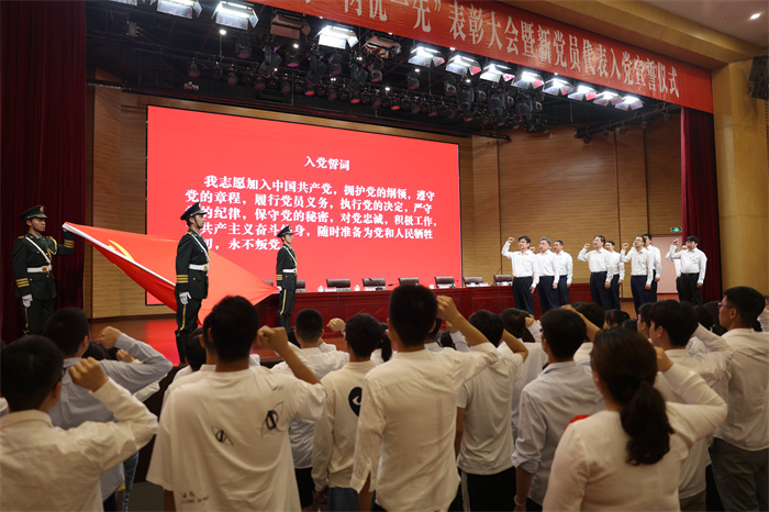 6月30日上午,浦京庆祝建党100周年“两优一先”表彰大会暨新党员代表入党宣誓仪式在明向校区学生活动中心举行。大会对近年来在学校实施综合改革、推进“双一流”建设中涌现出来的先进基层党组织、优秀共产党员、优秀党务工作者进行了表彰,并组织今年上半年新发展的100名党员、代表2707名新党员进行了庄严宣誓。校党委书记郑强,中国工程院院士、校长黄庆学,中国科学院院士赵阳升,校领导李晋平、刘润祥、翟健、吕永康、吴斗庆、张献明、冯国瑞出席大会,校党委委员、职能部门负责人、基层党委(直属党总支)书记、各学院院长、基层党委副书记、全体受表彰人员、党员代表等参加了大会。大会由黄庆学主持。