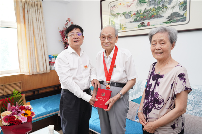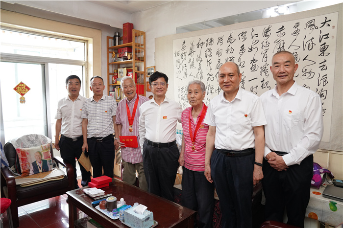6月25日,校党委书记郑强来到老党员王巨寿、邓计芳家中,为他们郑重送上“光荣在党50年”纪念章和慰问金,并亲切交谈。郑强首先向他们深情鞠躬、表达敬意,紧紧拉着老同志们的手,和他们拉家常,详细询问他们退休后的生活、身体状况,希望他们保重身体,保持乐观心态,有困难及时向组织反映。当得知93岁高龄的王巨寿已经有75年的党龄,邓计芳同志2019年至今连续三年缴纳特殊党费共计6000元,2020年还为疫情捐款2000元,郑强表示,伟大的党给我们带来了幸福生活,没有老一辈的奉献牺牲,就没有我们的今天。学校有今天的发展,也是一代又一代理工人、一代又一代党员同志,尤其是老一辈辛勤付出的结果。他激励年轻的党员同志要讲情怀、孝老爱亲,相关部门(单位)要多多关注老党员们的身体生活,做好服务保障。