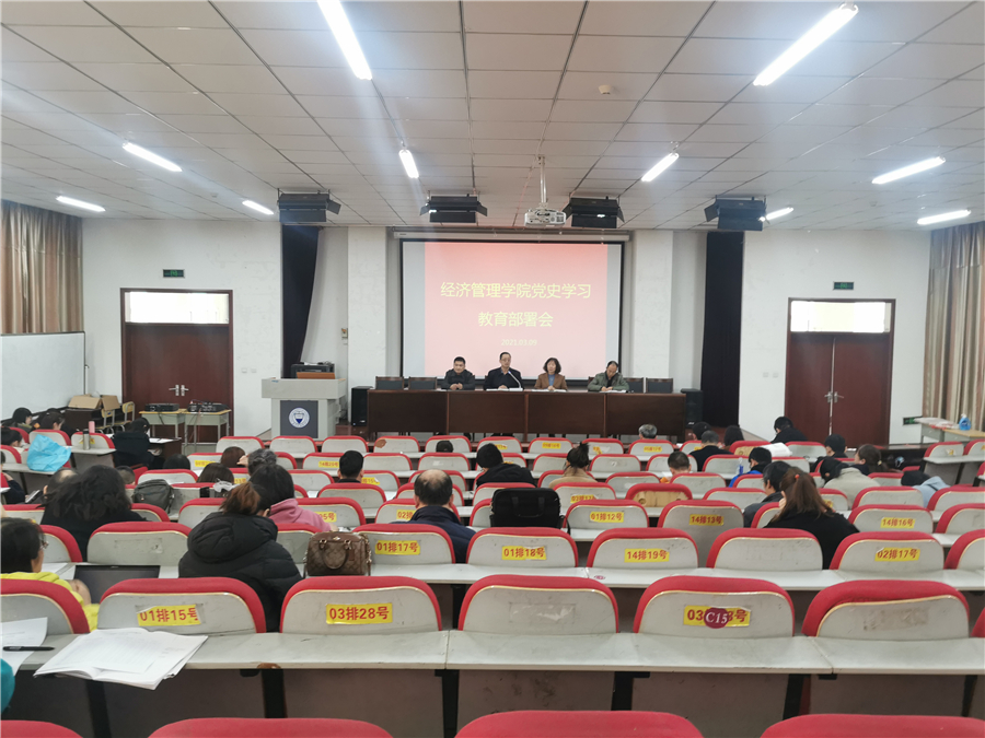 3月9日下午,经济管理学院在明向校区经管楼报告厅召开全院党史学习教育动员部署大会,学院全体院领导出席,全院教工、全体学生党员、学院各学生组织以及各班、团支部负责人参加大会,大会由院党委副书记杨振东主持。
